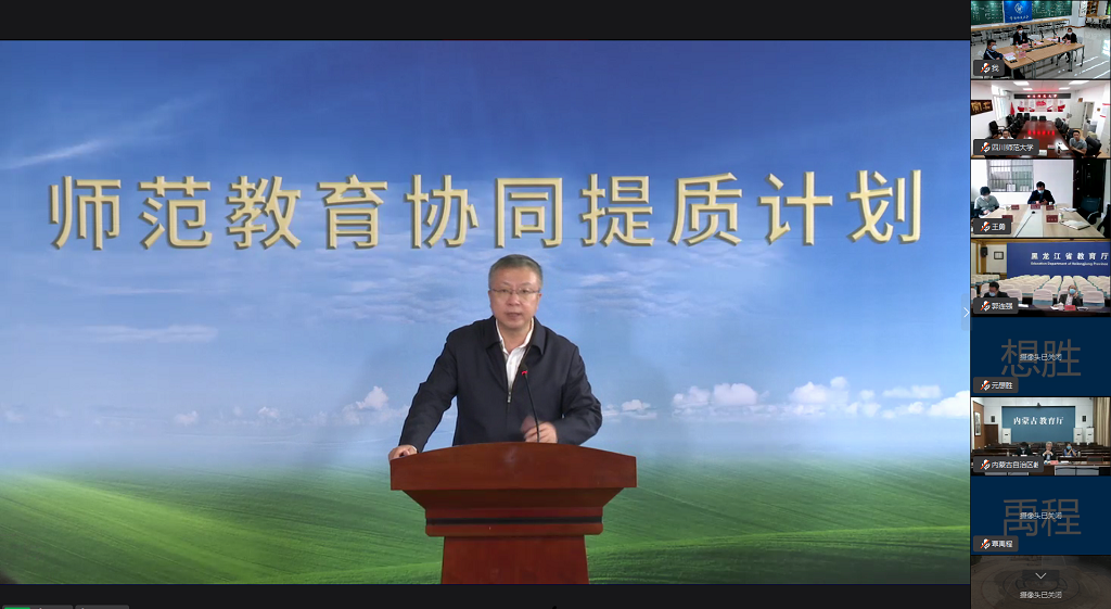 4月29日上午,教育部召开了师范教育协同体质计划部署视频会,校长童小娇,教务处、学科处、科研处等部门负责人参加了部署会。教育部教师工作司司长任友群强调,一是建立组团协同工作机制,10所牵头院校要担当起帮扶责任,组团内各高校要充分发挥各自优势,东、西部相互学习,共同发展进步;二是协调好整体发展与个性化需求,依照“一组一案、一校一策”的原则,明确工作目标,制定工作措施,提交工作进度时间表;三是抓好各项工作落实,师范院校主要负责人要牵头成立工作组,做好顶层设计和各部门的统筹工作,省级部门要加大支持力度和协调工作并加强监督;四是常态化宣传引导工作,要以文字、图片、视频等方式展现优秀案例,加大媒体、报刊、视频号等宣传力度,加强关于师范教育协同提质方面的研究。