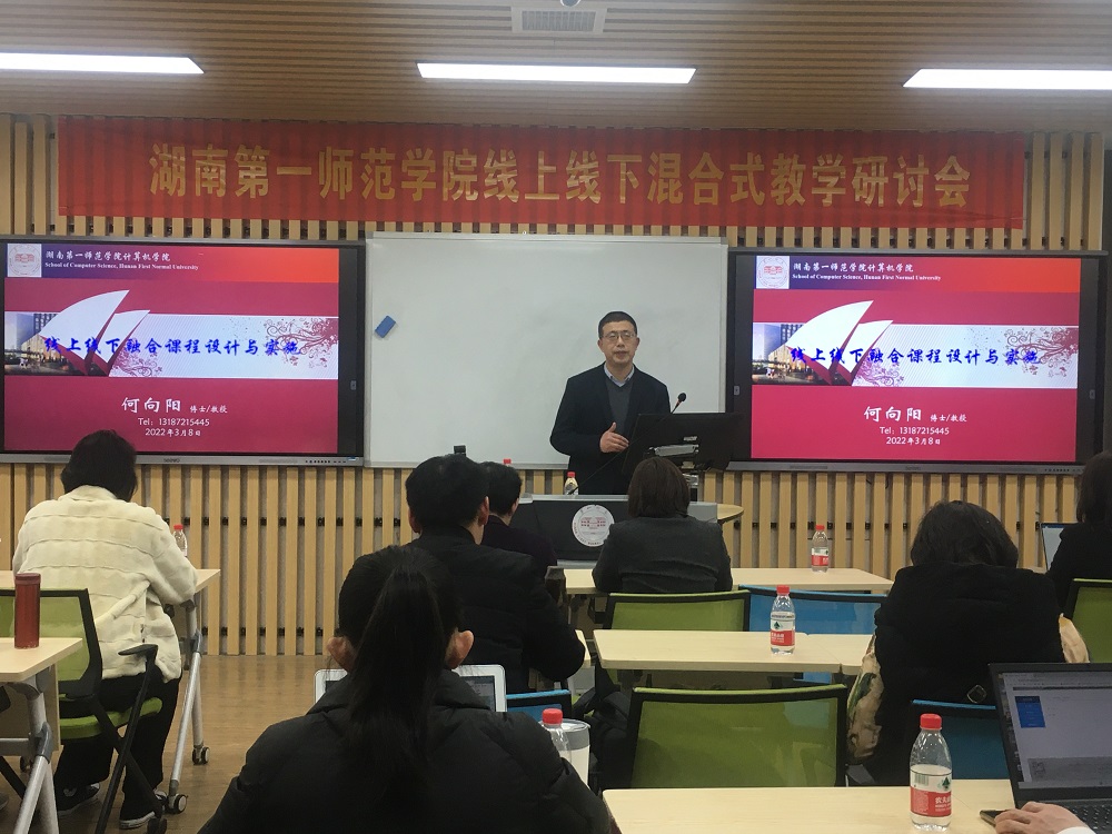 2022年3月8日下午,教务处组织召开线上线下混合式教学研讨会。来自二级学院的50多位教师参会。计算机学院教学院长何向阳教授担任主讲嘉宾,研讨会由教务处副处长唐文杰主持。