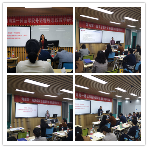 公共外语教学部主任刘明东作了题为“外语课程思政教学的有效途径——兼论《教师英语口语》课程思政教学”的专题讲座,为外语课程思政教学实践提供了理论指导。教务处处长蒋蓉对外语课程思政教学与研究取得的成绩进行了肯定,同时希望全校所有专业课程以《高等学校课程思政建设指导纲要》为行动指南,从教学目标、内容、方法、评价等方面推进课程思政教学改革,不断提升人才培养质量。外国语学院李双老师和公共外语教学部陈喜贝老师分享各自的课程思政教学设计,马克思主义学院院长周小李、外国语学院院长刘祥清对两位教师的教学设计作了精彩点评并提出了具体的指导意见。