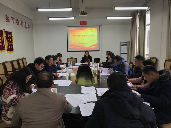 会上公布了教务处2019年全年工作安排,教务处副处长温群雄、李建亚、侯蓉分别就开学初主要教学工作做了具体安排和布置。与会人员对相关文件行了讨论。
