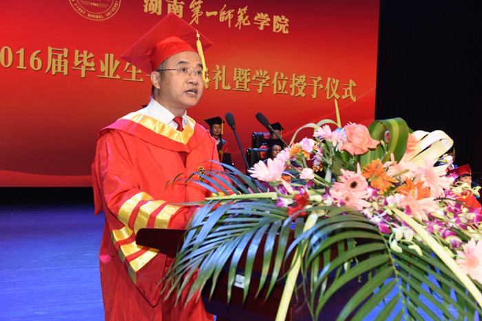 仪式上,主持人宣读了湖南省教育厅的表彰决定,郭卫明等89名同学被评为2016届省级优秀本科毕业生,欧文倩等3名学生被评为省级自主创业优秀毕业生。