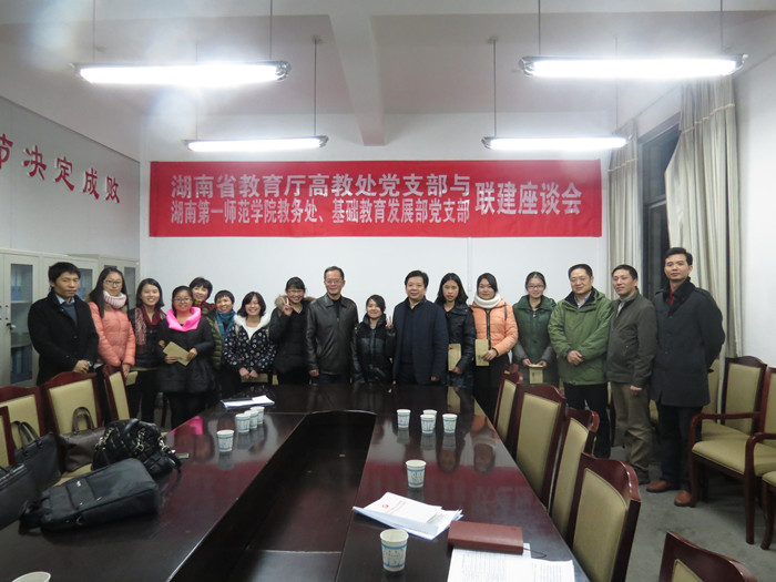 12月21日下午,省教育厅副厅长葛建中,高教处党支部成员唐利斌、杨承玖、张平、张琳、彭玮婧、曾思亮、巩德亮一行8人来到我校东方红校区,与我校教务处、基础教育发展部党支部开展联建活动。我校校长肖湘愚、副校长童小娇,教务处、基础教育发展部党支部全体党员参加了活动。