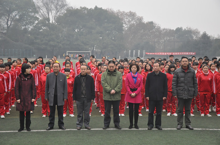 仪式上,彭小奇、肖湘愚、杨兰英代表师生向毛泽东铜像敬献了花篮,全体在场人员怀着无比崇敬的心情,集体向伟人三鞠躬,深切缅怀毛泽东同志的丰功伟绩。我校城南书院学生代表和一附小学生集体朗诵了主席的诗词《沁园春·长沙》,仪式在全场合唱校歌中结束。