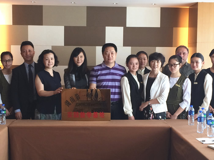 11月1日,校长肖湘愚、副校长童小娇,商学院院长佘国强等人赴深圳出席我校实践教学基地授牌仪式。肖湘愚为深圳皇庭酒店管理有限公司授予了“伟德国际1946实践教学基地”的牌匾。