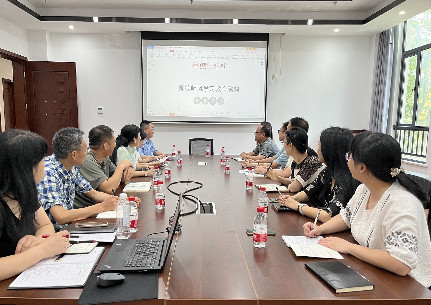 7月5日,教务处在百煕楼214会议室召开本科教育教学大会筹备工作推进会暨“师德集中学习教育”专题学习会议。会议由教学质量监控与教师教学发展中心主任、教务处副处长廖小芒主持,教务处副处长李雅湘、汤希玮,教学质量监控与教师教学发展中心副主任李婷及各科室人员参会。