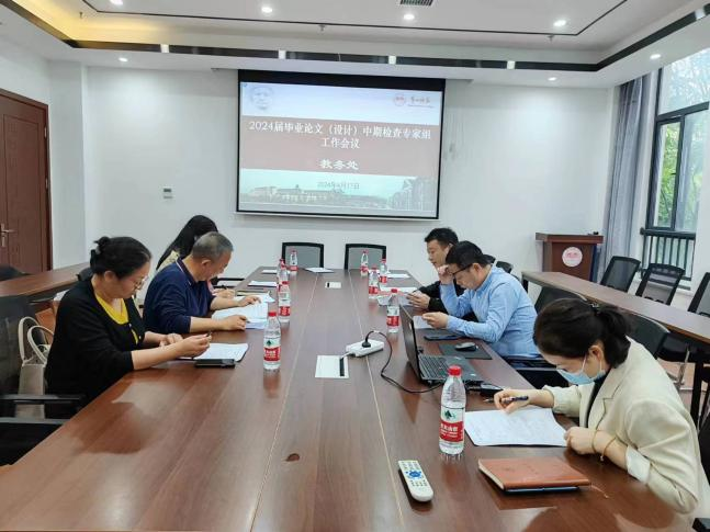 为进一步规范2024届本科毕业论文(设计)管理工作,及时掌握学生毕业论文进展情况,保障毕业论文成果质量,根据《关于开展2024届毕业论文(设计)中期检查的通知》(湘一师教通〔2024〕10号)要求,教务处于2024年4月17日下午召开2024届本科毕业论文(设计)中期检查专家组工作会议。教务处负责人、12位专家组成员及教务处实践教学科成员参加会议,会议由教务处副处长周枫林主持。