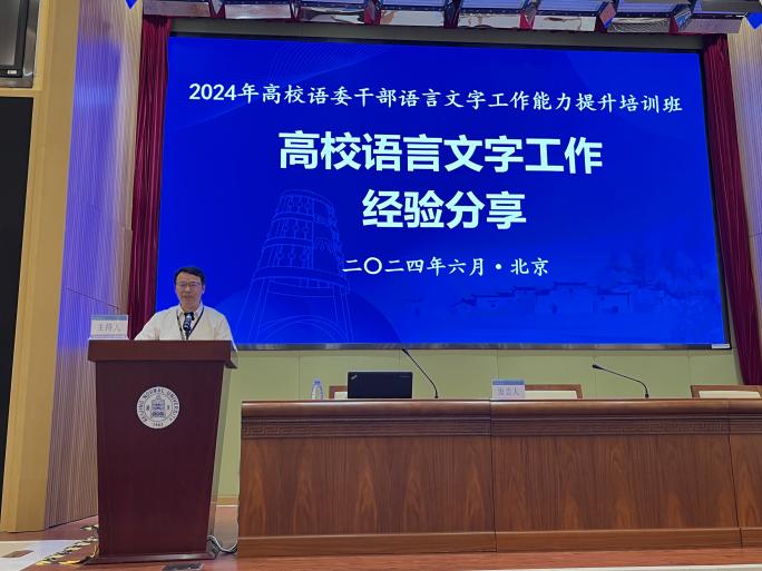 为深入学习贯彻习近平新时代中国特色社会主义思想、全面落实党的二十大精神,加大国家通用语言文字推广力度,传承发展中华优秀语言文化,有效提升高校语言文字工作水平,培育新时代高校语言文字工作人才队伍,2024年6月,教育部语言文字应用司举办高校语委干部语言文字工作能力提升培训班。全国各高校分管语言文字工作的校领导100余人参加了此次培训,我校校党委委员、副校长、国家语言文字推广基地负责人彭晓辉参加了此次培训。