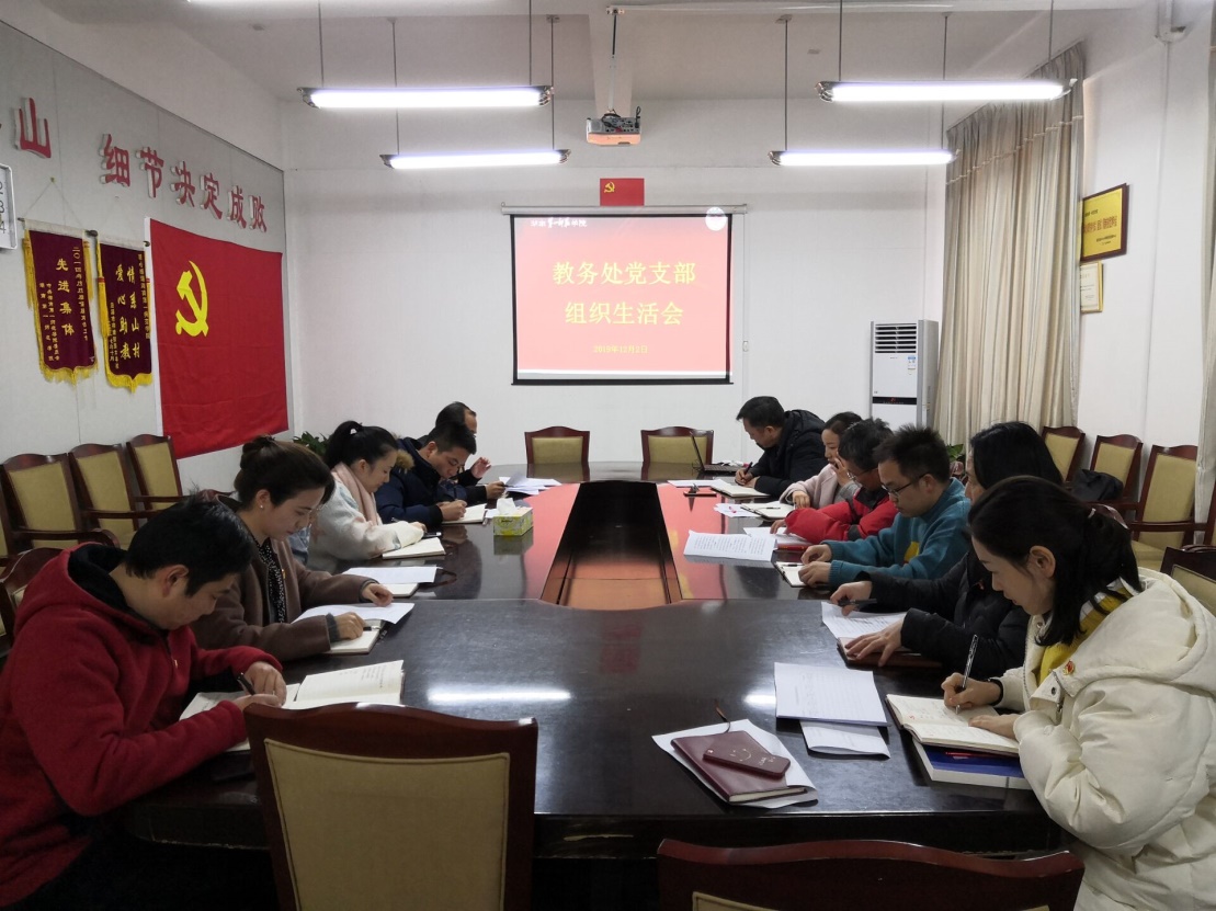 根据学校“不忘初心、牢记使命”主题教育工作安排及开展2019年度民主评议党员工作的有关通知要求,12月2日下午,教务处党支部在教务处会议室召开组织生活会。会议由党支部副书记唐文杰主持,全体党员参加。