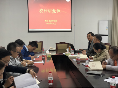 10月12日下午,校党委委员、副校长江正云以“不忘初心、牢记使命”为题,在教务处会议室给教务处党支部、教学评估及教师教学发展中心党支部全体党员上了一堂生动的党课。