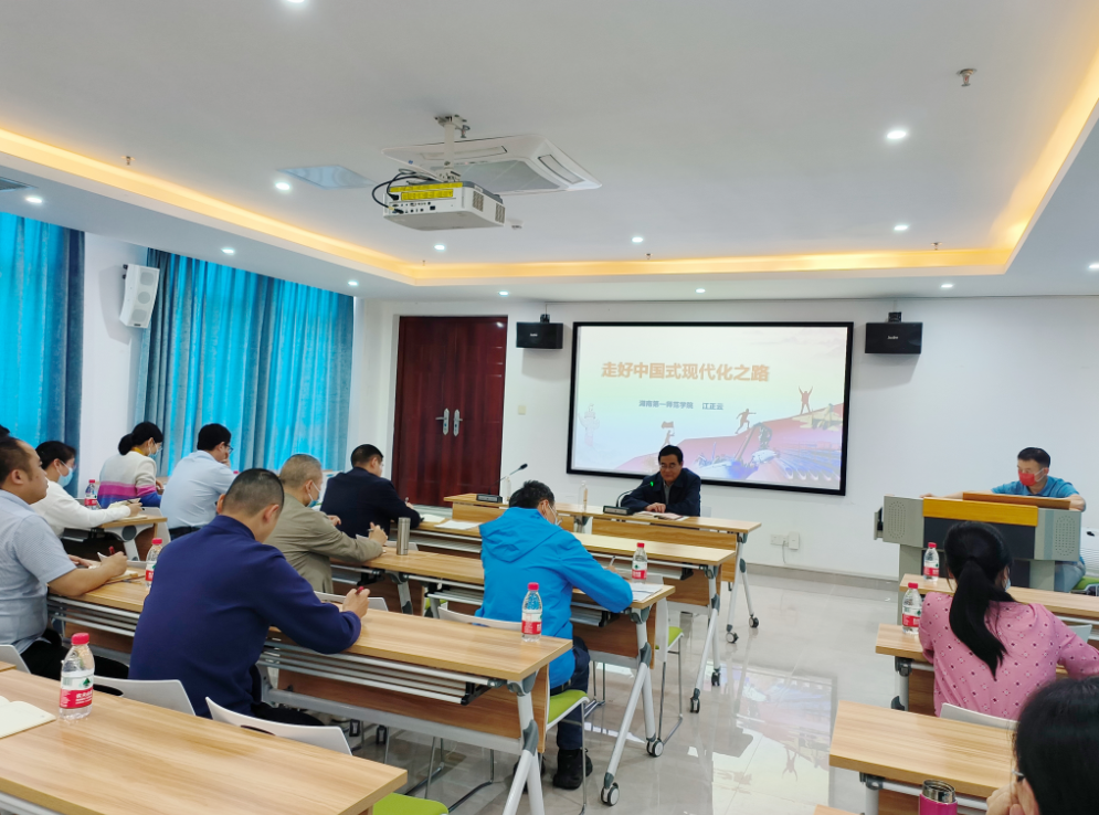 5月24日下午,校党委委员、副校长江正云以“走好中国式现代化之路”为题,在百熙楼414会议室给教务处党支部、教学质量监控及教师教学发展中心党支部、财务处党支部、档案与校史馆党支部、招生就业处、校友联络处党支部的全体党员上了一堂生动的党课。